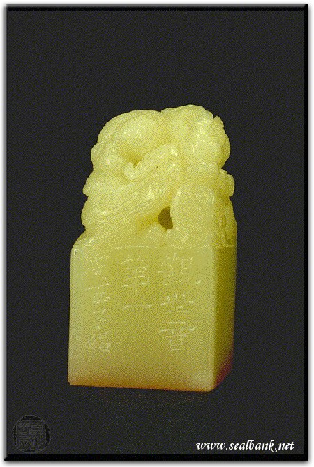 黃嘗銘.四十歲/刻〔觀世音〕正方白文印。邊款為【觀世音第一。癸酉,子昭。】芙蓉石。