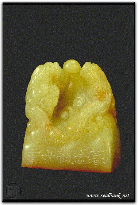 黃嘗銘.四十歲/刻〔暮念觀世音〕長方加框白文印。邊款為【暮念觀世音第八。癸酉,子昭。】芙蓉石。