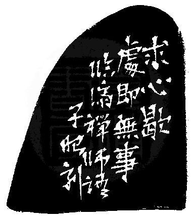 黃嘗銘.卅九歲/刻〔無事心閒〕自然形朱文印。邊款為【求心歇處即無事。臨濟禪師語。子昭刻。】巴林凍。