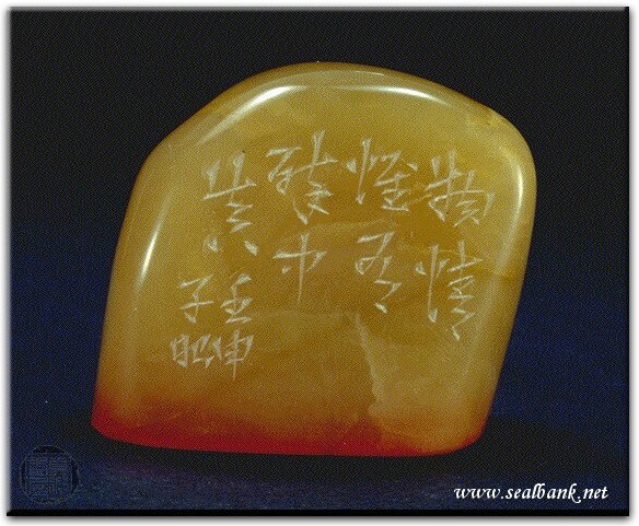 黃嘗銘.卅九歲/刻〔醉中真〕自然形朱文印。邊款為【物情惟有醉中真。壬申,子昭。】巴林凍。