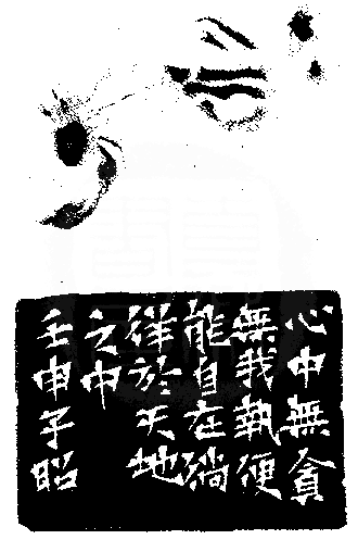 黃嘗銘.卅九歲/刻〔心安理得〕長方朱文印。邊款為【心中無貪無我執,便能自在徜徉於天地之中。壬申,子昭。】原印今藏於任容清。壽山石。
