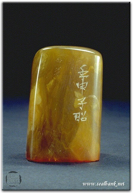黃嘗銘.卅九歲/刻〔暢鬱結之懷〕自然形白文印。邊款為【壬申,子昭。】原印今藏於杜三鑫。巴林凍。