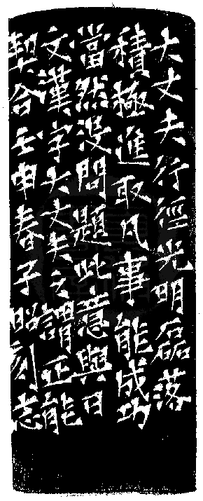 黃嘗銘.卅九歲/刻〔大丈夫〕正方朱白文印。邊款為【大丈夫行徑光明磊落,積極進取,凡事能成功,當然沒問題,此意與日文漢字大丈夫之謂,正能契合。壬申春,子昭刻志。】巴林石。