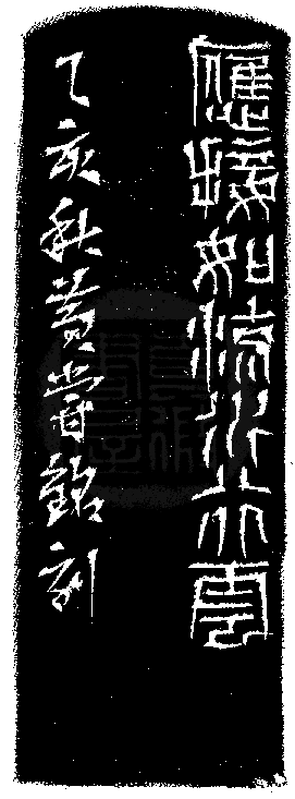 黃嘗銘.四十二歲/刻〔流水行雲〕正方朱白文印。邊款為【應接如流水行雲。乙亥秋,黃嘗銘刻。】原印今藏於蔡裕仁。青田凍。