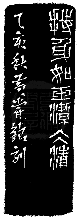 黃嘗銘.四十二歲/刻〔玉潔冰清〕正方回文白文印。邊款為【持身如玉潔冰清。乙亥秋,黃嘗銘刻。】原印今藏於蔡裕仁。青田凍。