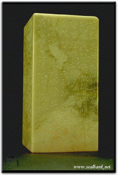 | | 印文:總中和以統物咸日用而不失 | | 約 橫 3.8 X 豎 3.8 公分 印面圖 邊款圖 | | 黃嘗銘.四十歲/刻〔總中和以統物咸日用而不失〕正方細朱文印。邊款為【若論其體勢,詳其風聲。器和故響逸,張急故聲清。間遼故音庳,絃長故徽鳴。性絜靜以端理,含至德之和平。誠可以感盪心志,而發洩幽情矣。是故懷戚者聞之,莫不憯懍慘悽,愀愴傷心。含哀懊咿,不能自禁。其康樂者聞之,則欨愉懽釋,抃舞踊溢。留連瀾漫,嗢噱終日。若和平者聽之,則怡養悅悆,淑穆玄真。恬虛樂古,棄事遺身。是以伯夷以之廉,顏回以之仁,比干以之忠,尾生以之信。惠施以之辯給,萬石以之訥慎。其餘觸類而長,所致非一。同歸殊途,或文或質。總中和以統物,咸日用而不失。】巴林石。 1993 年刻 |