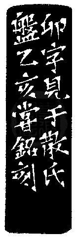 黃嘗銘.四十三歲/刻〔卯〕正方加框白文印。邊款為【卯字見于散氏盤。乙亥,嘗銘刻。】巴林凍。