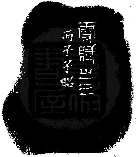 黃嘗銘.四十三歲/刻〔未若茲雪因時興滅〕自然形朱文印。邊款為【雪賦之三。丙子,子昭。】昌化雞血。