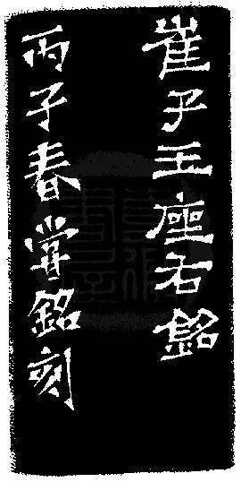 黃嘗銘.四十三歲/刻〔崔子玉座右銘〕正方細朱文印。邊款為【崔子玉座右銘。丙子春,嘗銘刻。】巴林雞血。