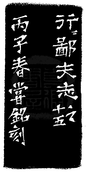 黃嘗銘.四十三歲/刻〔行行鄙夫志〕正方加框白文印。邊款為【行行鄙夫志。之十五。丙子春,嘗銘刻。】巴林雞血。