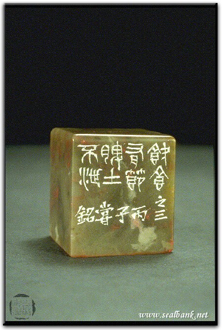 黃嘗銘.四十三歲/刻〔飲食有節〕正方朱文印。邊款為【飲食有節,脾土不泄。之三。丙子,嘗銘。】原印今藏於石汝銘。昌化雞血。