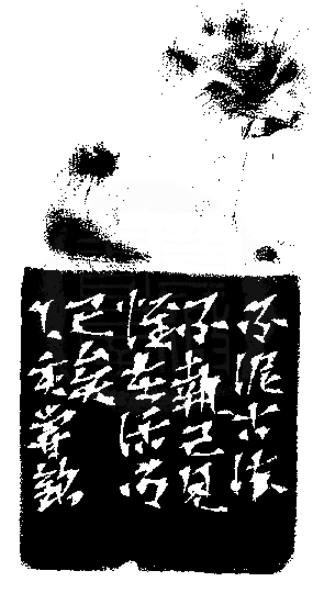 黃嘗銘.四十二歲/刻〔在活〕長方加框白文印。邊款為【不泥古法,不執己見,惟在活而已矣。乙亥,嘗銘。】原印今藏於張蓓齡。芙蓉石。