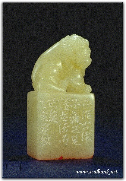 黃嘗銘.四十二歲/刻〔在活〕長方加框白文印。邊款為【不泥古法,不執己見,惟在活而已矣。乙亥,嘗銘。】原印今藏於張蓓齡。芙蓉石。