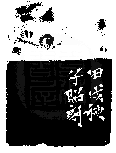 黃嘗銘.四十一歲/刻〔金石壽〕長方朱文印。邊款為【甲戌秋,子昭刻。】原印今藏於吳耀輝。壽山石。