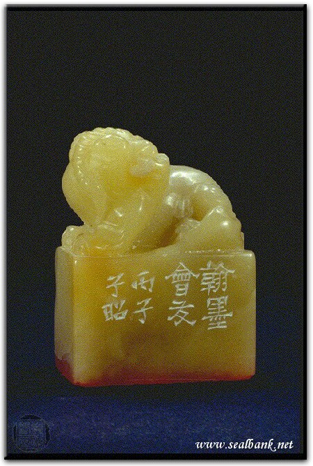 黃嘗銘.四十三歲/刻〔翰墨會友〕長方朱文借邊印。邊款為【翰墨會友。丙子,子昭。】原印今藏於蕭俊卿。芙蓉石。