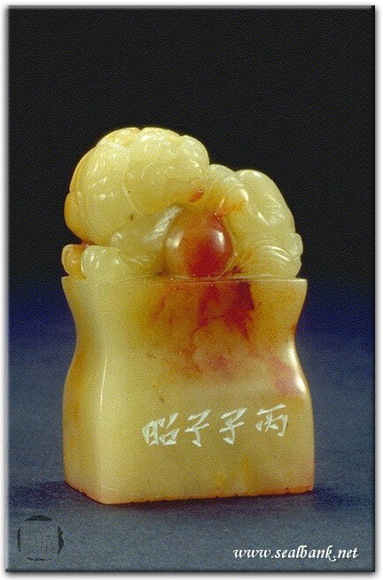 黃嘗銘.四十三歲/刻〔謙慎〕長方朱文印。邊款為【丙子,子昭。】原印今藏於陳美安。芙蓉石。