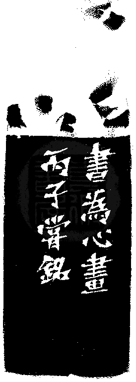 黃嘗銘.四十三歲/刻〔心之畫〕長方朱文借邊印。邊款為【書為心畫。丙子,嘗銘。】原印今藏於徐淑端。壽山石。