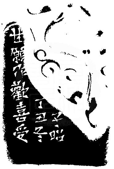 黃嘗銘.四十四歲/刻〔歡喜受〕長橢圓朱文印。邊款為【甘願作,歡喜受。丁丑冬,子昭。】原印今藏於傅玉芳。江西石。