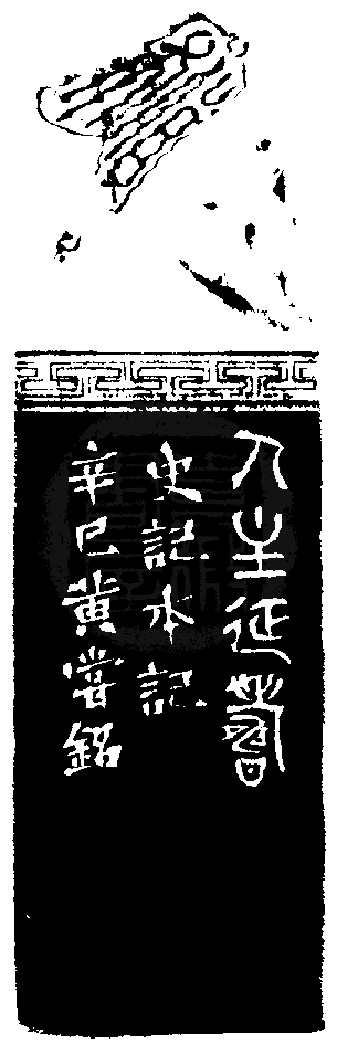 黃嘗銘.四十八歲/刻〔人主延壽〕正方細朱文印。邊款為【人主延壽。史記本記。辛巳,黃嘗銘。】壽山高山凍。