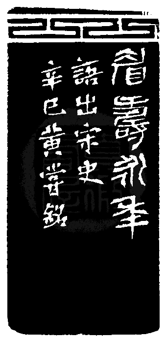 黃嘗銘.四十八歲/刻〔眉壽永年〕正方朱文借邊印。邊款為【眉壽永年。語出宋史。辛巳,黃嘗銘。】荔枝凍。