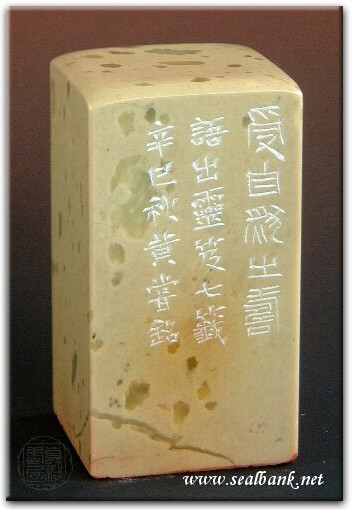 黃嘗銘.四十八歲/刻〔受自然之壽〕正方白文印。邊款為【受自然之壽。語出靈笈七籤。辛巳秋,黃嘗銘。】巴林左旗石。