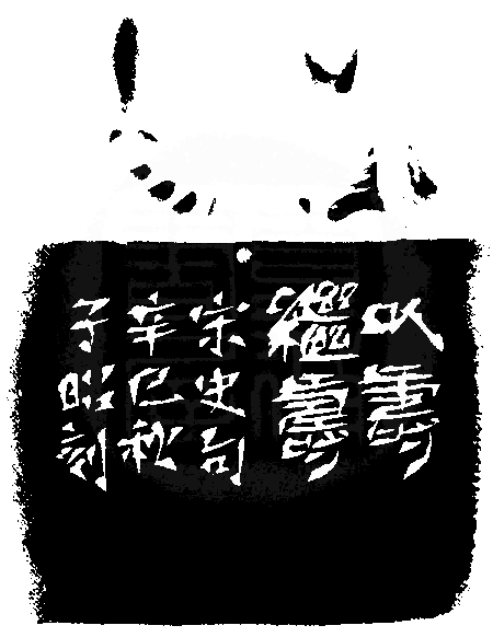 黃嘗銘.四十八歲/刻〔以壽繼壽〕長橢圓加框白文印。邊款為【以壽繼壽。宋史句。辛巳秋,子昭刻。】原印今藏於張國萍。芙蓉石。