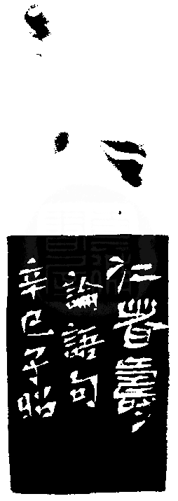 黃嘗銘.四十八歲/刻〔仁者壽〕正方朱文印。邊款為【仁者壽。論語句。辛巳,子昭。】原印今藏於蕭俊卿。芙蓉石。