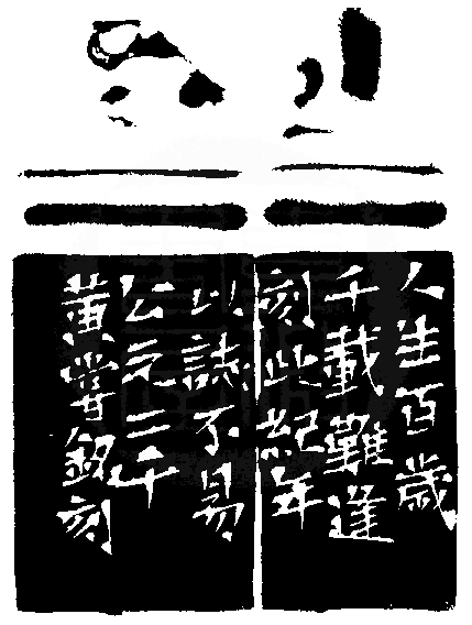 黃嘗銘.四十七歲/刻〔公元二千〕長方朱文印。邊款為【人生百歲,千載難逢,刻此紀年,以誌不易。公元二千,黃嘗銘刻。】原印今藏於張國萍。巴林凍。