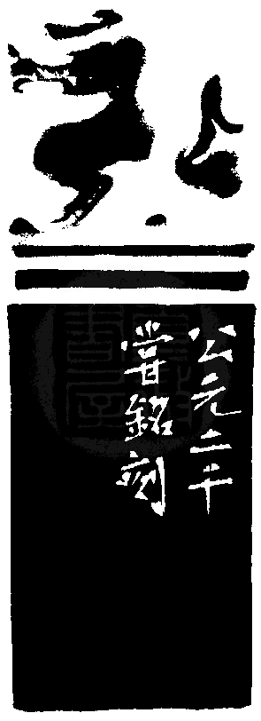 黃嘗銘.四十七歲/刻〔自在〕長方加框白文印。邊款為【公元二千,嘗銘刻。】原印今藏於謝義勇。巴林凍。