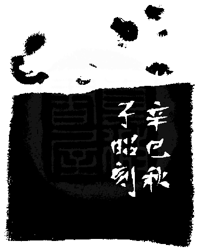 黃嘗銘.四十八歲/刻〔誰共語〕長橢圓朱文印。邊款為【辛巳秋,子昭刻。】芙蓉石。