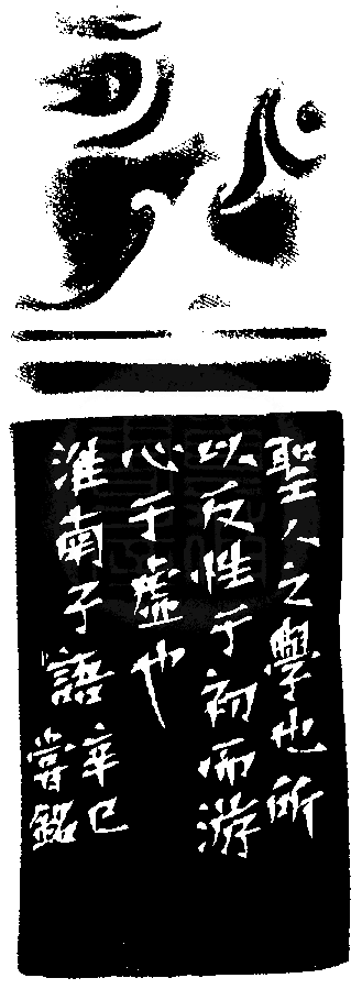黃嘗銘.四十八歲/刻〔游心〕長方白文印。邊款為【聖人之學也,所以反性于初,而游心于虛也。淮南子語。辛巳,嘗銘。】原印今藏於傅玉芳。芙蓉石。