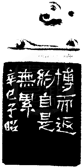 黃嘗銘.四十八歲/刻〔博而返約〕正方白文印。邊款為【博而返約,自是無累。辛巳,子昭。】芙蓉石。