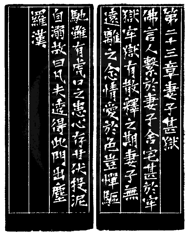 黃嘗銘.四十五歲/刻〔妻子甚獄〕正方朱白文印。邊款為【第二十三章妻子甚獄。佛言:人繫於妻子舍宅,甚於牢獄。牢獄有散釋之期,妻子無遠離之念。情愛於色,豈憚驅馳!雖有虎口之患,心存甘伏,投泥自溺,故曰凡夫。透得此門,出塵羅漢。】