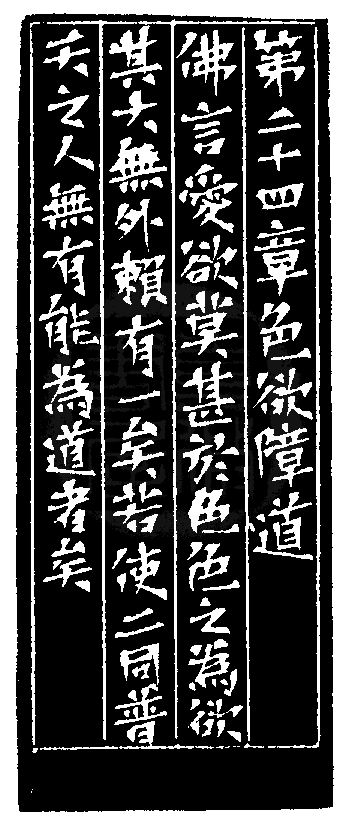 黃嘗銘.四十五歲/刻〔色欲障道〕正方細朱文印。邊款為【第二十四章色欲障道。佛言:愛欲莫甚於色。色之為欲,其大無外,賴有一矣。若使二同,普天之人,無能為道者矣。】