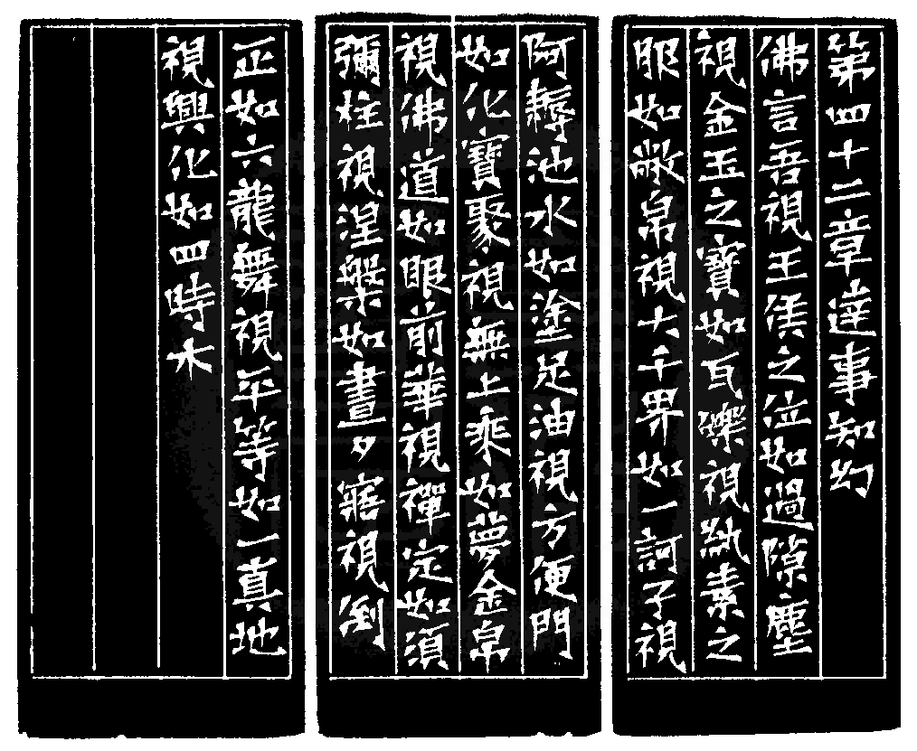 黃嘗銘.四十五歲/刻〔達事知幻〕正方朱文印。邊款為【第四十二章達事知幻。佛言:吾視王侯之位,如過隙塵。視金玉之寶,如瓦礫。視籸素之服,如敝帕。視大千界,如一訶子。視阿耨池水,如塗足油。視方便門,如化寶聚。視無上乘,如夢金帕。視佛道,如眼前華。視禪定,如須彌柱。視涅槃,如晝夕寤。視倒正,如六龍舞。視平等,如一真地。視興化,如四時木。】