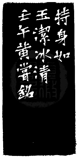 黃嘗銘.四十九歲/刻〔玉潔冰清〕正方白文印。邊款為【持身如玉潔冰清。壬午,黃嘗銘。】江西石。