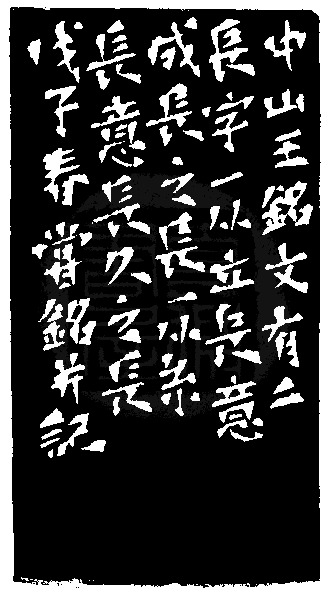 黃嘗銘.五十五歲/刻自用印〔子昭福德長盛〕正方朱文印。邊款為【中山王銘文有二長字,一從立長,意成長之長,一從糸長,意長久之長。戊子春,嘗銘并記。】