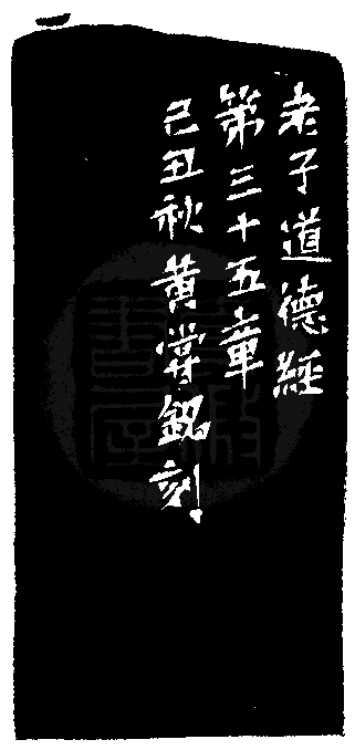 黃嘗銘.五十六歲/刻〔執大象天下往〕長方白文印。邊款為【老子道德經第三十五章,己丑秋,黃嘗銘刻。】芙蓉石。