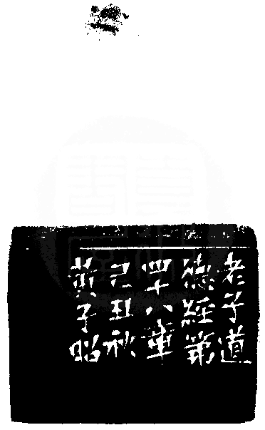 黃嘗銘.五十六歲/刻〔為學日益為道日損〕正方白文印。邊款為【老子《道德經》第四十八章,己丑秋,黃子昭。】芙蓉石。