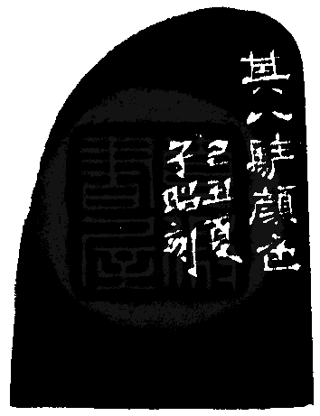 黃嘗銘.五十六歲/刻〔駐顏色〕長方朱文印。邊款為【其八駐顏色。己丑夏,子昭刻。】昌化雞血石。