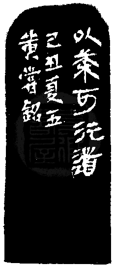 黃嘗銘.五十六歲/刻〔可行道〕正方加框白文印。邊款為【以茶可行道。己丑夏五,黃嘗銘。】芙蓉石。自然頂。