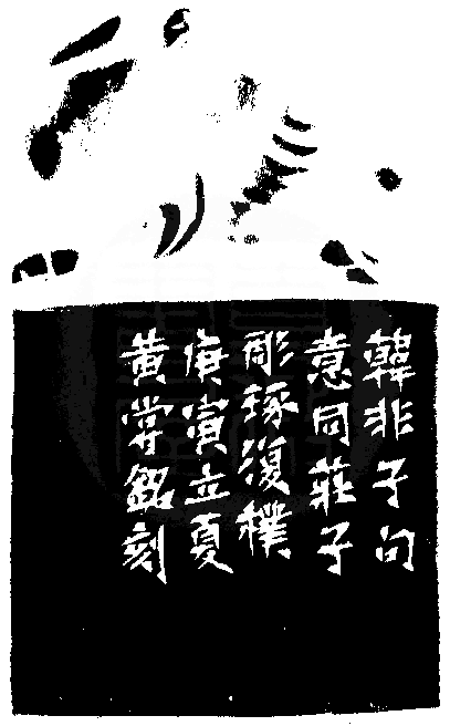 黃嘗銘.五十七歲/刻〔既彫既琢還歸其樸〕正方朱文印。邊款為【韓非子句,意同莊子彫琢復樸,庚寅立夏,黃嘗銘刻。】芙蓉石。盤身螭鈕。