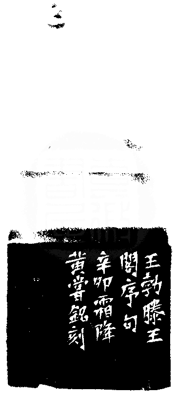 黃嘗銘.五十八歲/刻〔君子安貧達人知命〕正方朱文印。邊款為【王勃滕王閣序句。辛卯霜降,黃嘗銘刻。】芙蓉石。