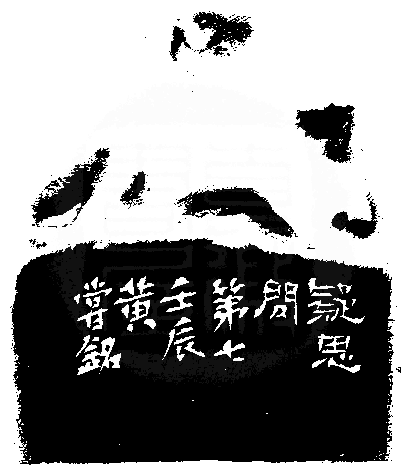 黃嘗銘.五十九歲/刻〔疑思問〕長橢圓朱文印。邊款為【疑思問第七。壬辰,黃嘗銘。】芙蓉石。獸鈕。