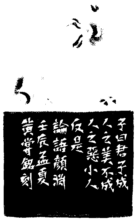 黃嘗銘.五十九歲/刻〔君子成人之美〕長方朱文印。邊款為【子曰:君子成人之美,不成人之惡;小人反是。《論語.顏淵》。壬辰孟夏,黃嘗銘刻。】