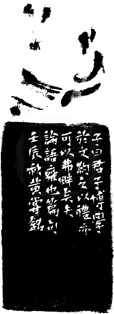 黃嘗銘.五十九歲/刻〔博學於文約之以禮〕正方朱文印。邊款為【子曰:君子博學於文,約之以禮,亦可以弗畔矣夫。《論語.雍也》篇句。壬辰秋,黃嘗銘。】