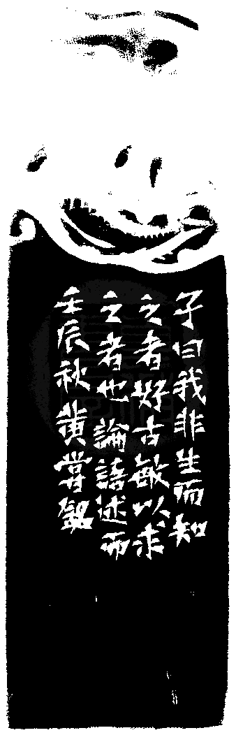 黃嘗銘.五十九歲/刻〔好古敏求〕正方加框白文印。邊款為【子曰:我非生而知之者,好古敏以求之者也。論語述而,壬辰秋,黃嘗銘。】芙蓉石。龍鈕。