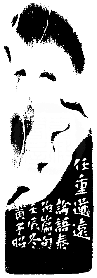 黃嘗銘.五十九歲/刻〔任重道遠〕正方加框白文印。邊款為【任重道遠。論語泰伯篇句,壬辰冬,黃子昭。】芙蓉石。荷葉鈕。