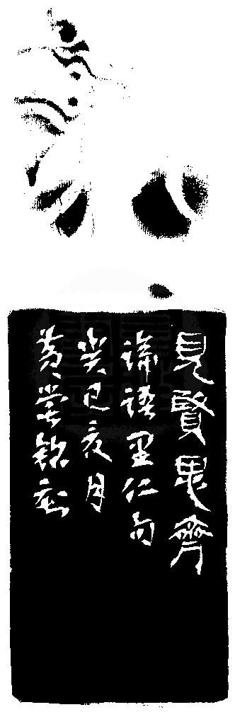 黃嘗銘.六十歲/刻〔見賢思齊〕正方朱文印。邊款為【見賢思齊。《論語.里仁》句。癸巳夏月,黃嘗銘刻。】芙蓉石。