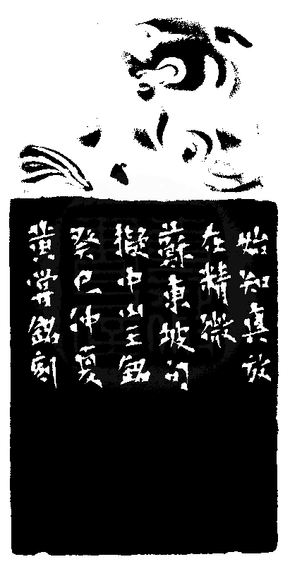 黃嘗銘.六十歲/刻自用印〔真放在精微〕長方細朱文印。邊款為【始知真放在精微,蘇東坡句,擬中山王銘,癸巳仲夏,黃嘗銘刻。】壽山荔枝洞。